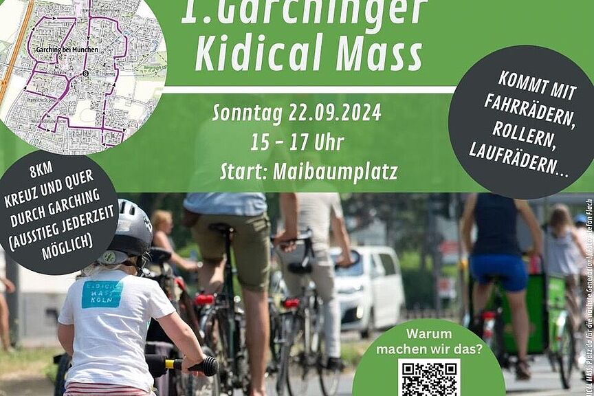 Familienfreundliche Fahrraddemo am Sonntag, 22. September 2024, in Garching: Kommt vorbei und radelt mit uns mit!