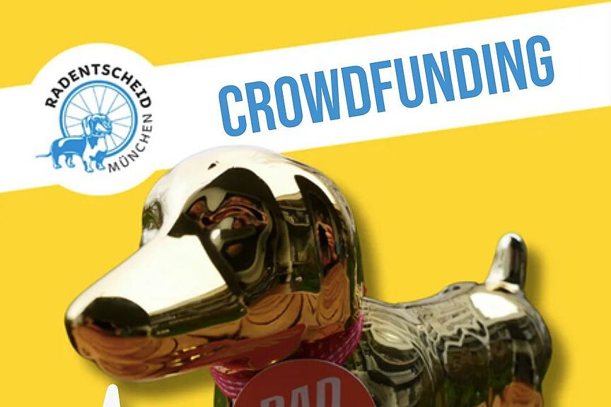 Am Sonntag, den 21. April, findet die große Radsternfahrt für den Radentscheid München und besseren Radverkehr in Stadt und Land statt. Du kannst das Projekt unterstützen, indem du beim Crowdfunding spendest oder eines der tollen Dankeschöns - wie den goldenen Dackel Conny Conrad - als Gegenleistung wählst.