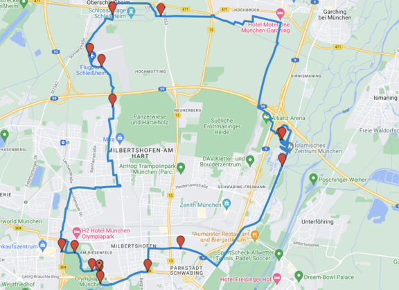 Eine Radtour durch den Münchner Norden, vom Olympiapark über den Müllberg, das FC-Bayern-Stadion, nach Schleißheim, dann…